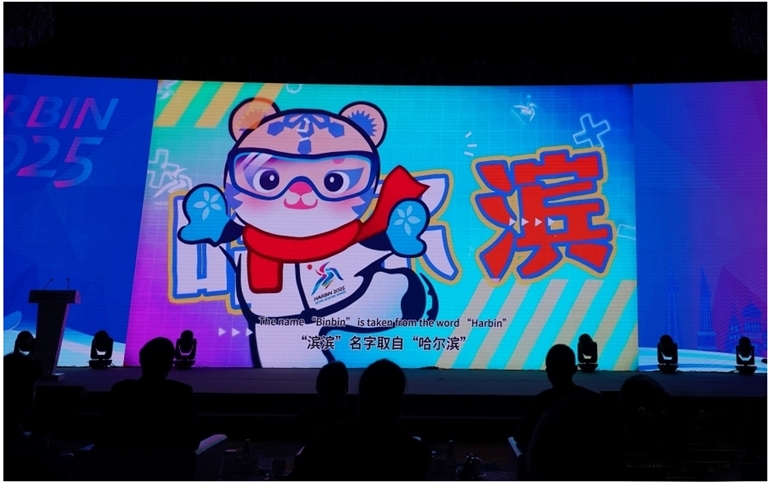 1月11日,2025年第九届亚洲冬季运动会口号、会徽、吉祥物在黑龙江哈尔滨发布。本届赛会的口号“冰雪同梦,亚洲同心(Dream of Winter,Love among Asia)”、会徽“超越”、吉祥物“滨滨”和“妮妮”正式亮相。图为2025年第九届亚洲冬季运动会吉祥物“滨滨”,以2023年9月出生于黑龙江东北虎林园的小东北虎为原型,寓意为“哈尔滨欢迎您”。