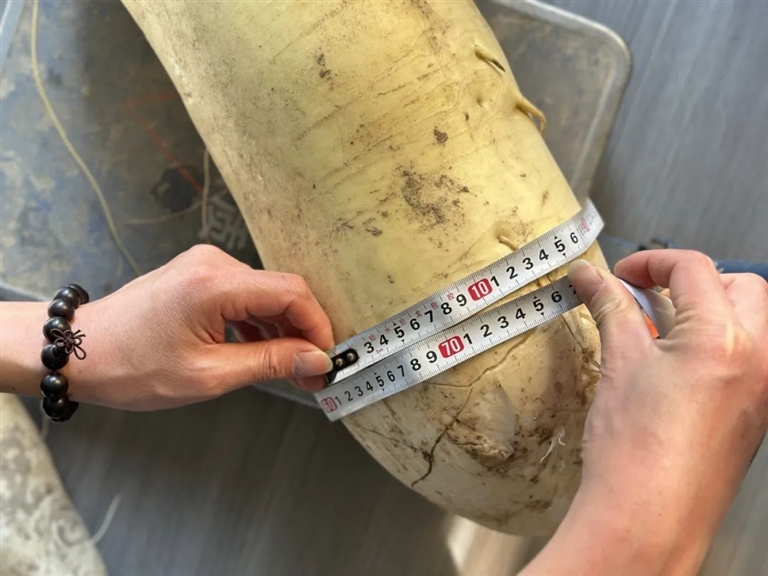 2006年12月,本报曾报道金塘农户种出8公斤多的大萝卜,最近这个纪录被刷新了。近日,普陀山文化福田种出了“萝卜王”,重达10.78公斤,比大腿还粗!