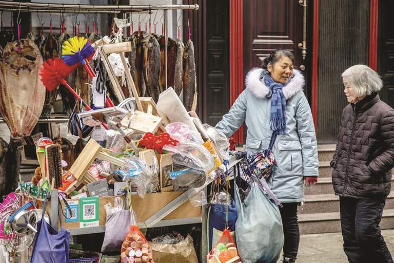 当记者在梁弄菜市场路口和陈慧一起摆摊闲聊时,几乎每隔不到十分钟就会被打断,热水瓶塞、苍蝇拍、打火机……小镇的清晨属于挎着菜篮的居民,无论买与不买,他们都会在陈慧的小车前停下来寒暄几句。