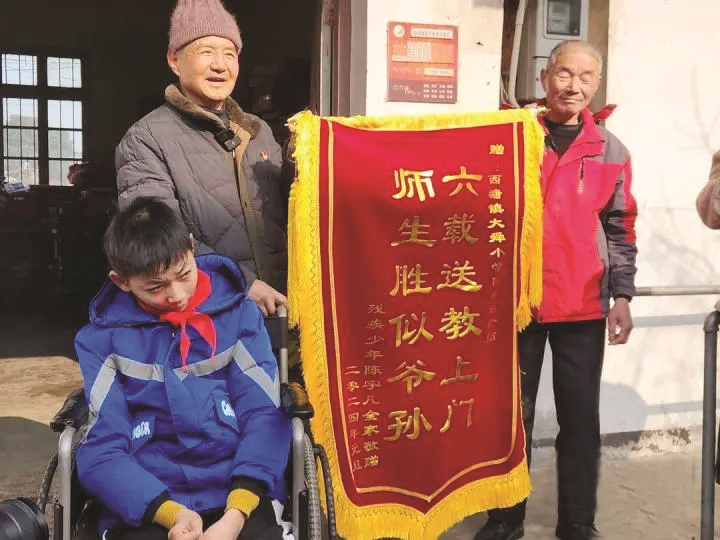 “六载送教上门,师生胜似爷孙”,1月6日一大早,宇凡就让爷爷把这面红通通的锦旗挂在了门前,这是他要送给陈老师的礼物。