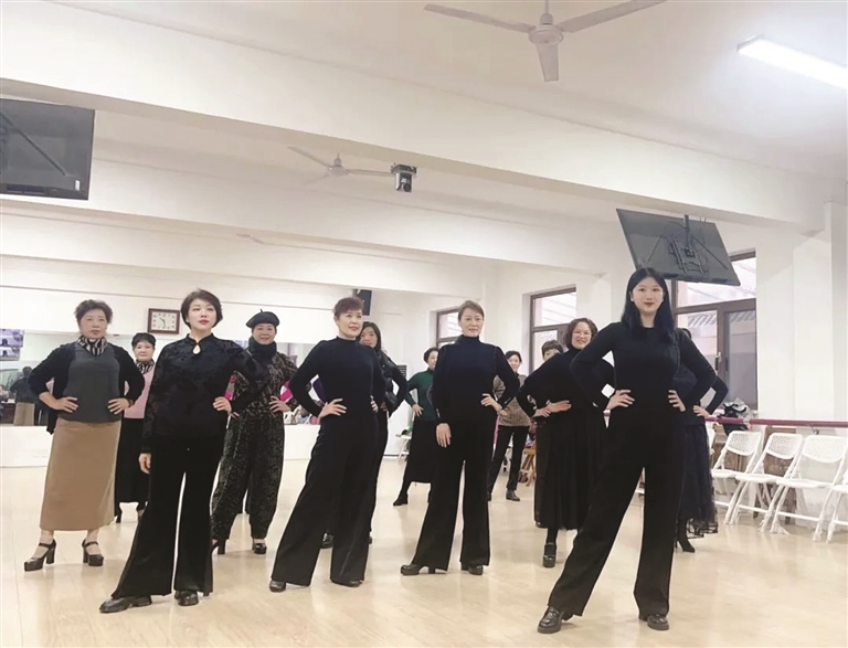 我还会鼓励阿姨们穿好看的衣服、高跟鞋来上课,六七十岁的老年人,可以穿10厘米的高跟鞋走秀,特别厉害。