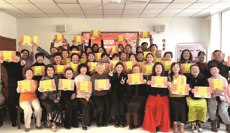 我是我们老年大学最年轻的一个老师,一开始我们还是有担忧的,不知道有没有人报名,没想到开课半天名额就被抢光了。有些阿姨从一开始就上我的课,已经跟我三年了,每周四都喜欢来找我玩,成了老年大学的“钉子户”。