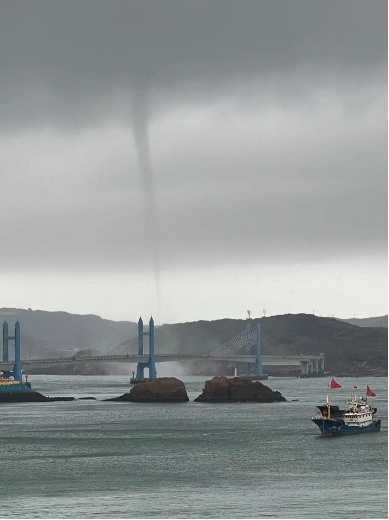 11月5日上午,受冷锋前暖湿气流影响,嵊山附近海域惊现“龙吸水”奇观,海面上出现巨型涡旋,一条巨大的气柱从涡旋中升起,直冲天空中的云层,海天之间形成了一条漏斗式水龙。水龙卷一般出现在春夏季,11月出现水龙卷实属罕见。