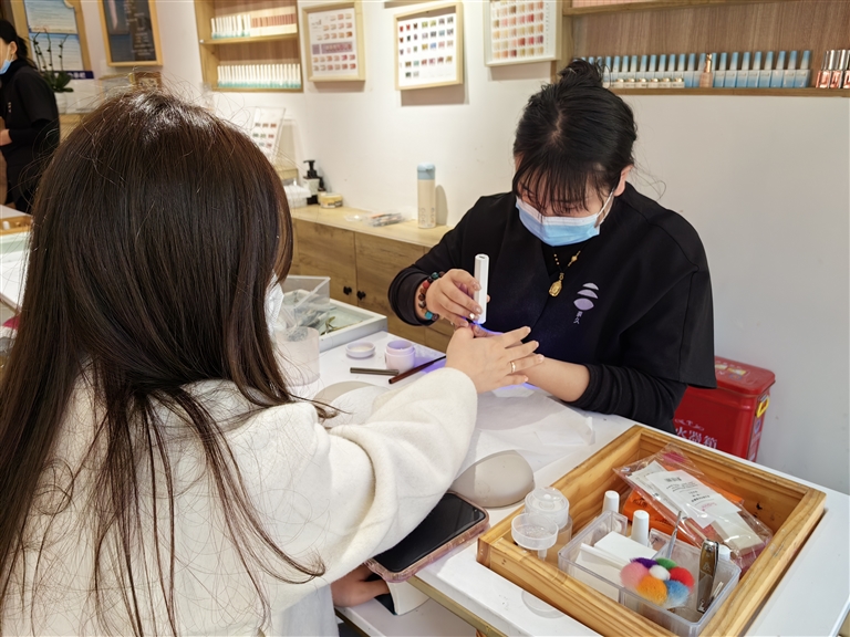 新城体育路奈久美甲美睫店店长徐女士告诉记者,近期每天有七八个客户到店做美甲、美睫和护肤,但除夕前半个月,店内七个美甲师手上都会排满单,“最近这段时间是比较尴尬的,因为离过年还有一段时间,现在做了美甲美睫,到过年又要重新做。所以很多顾客想过段时间再来。”