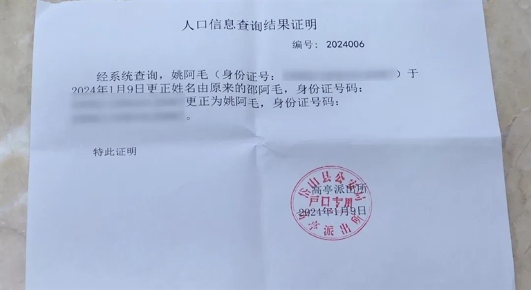 原来,当年做第一代身份证时,不会普通话也不识字的姚阿婆用方言将自己的名字报给了工作人员,误将“姚”姓登记成了“邵”姓,导致身份证和户籍都是错误的姓氏。这一错就是三十多年,如今姚阿婆的年纪越来越大,改回原姓的想法愈发强烈。