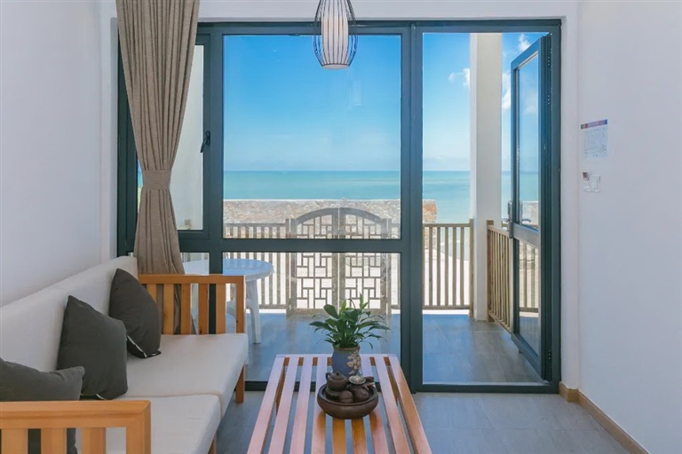 青浜记忆民宿共有11个房间,全为海景房,透亮无遮挡的广角视野,躺在床上便可透过宽敞明亮的落地窗将东海的全部景致收入眼底。夜晚躺在柔软的大床上听海入梦,清晨伴着阳光海浪醒来,从清晨到日暮,睁开眼就触及到所有的美好。