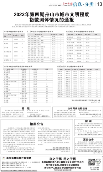 2023年第四期舟山市城市文明程度指数测评情况的通报