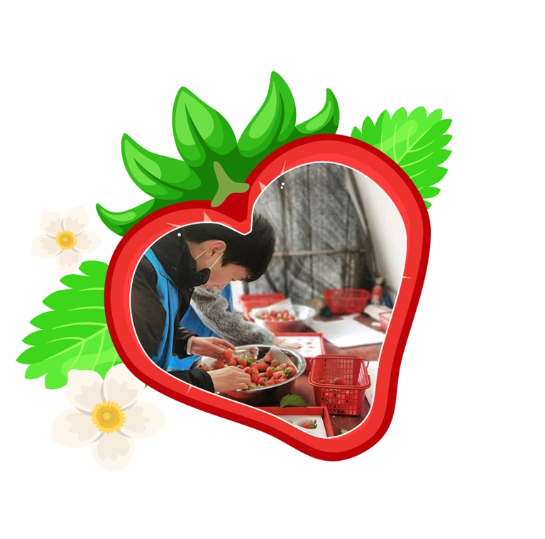 跨境电子商务专业大二男生羊沛强,是台州人,“外来农户生活不易,草莓采摘遇困,我们作为大学生为社会贡献一份爱心。”