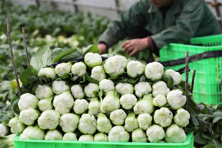 展茅街道大展村,村民采收打霜青菜 记者 陈永建 摄