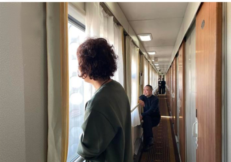 宁波人姚阿姨站在软卧车厢的过道上,看着窗外飞驰而过的风景,“不同的地方,房子造得不一样,树木长得不一样,山山水水的一路看下来,也挺愉快。”
