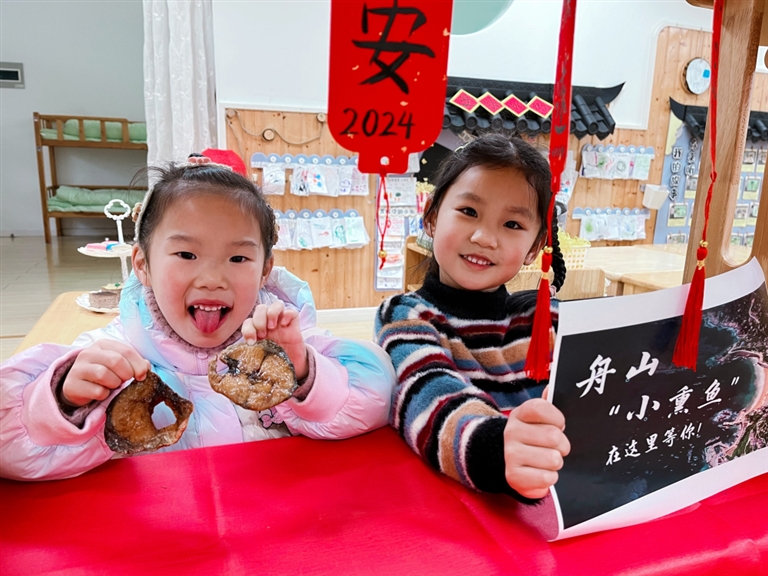 “舟山欢迎你!来我们舟山一定要吃双面煎的生煎包哦!”“熏鱼也是我们家乡的特色美食,酸酸甜甜很好吃!”……1月16日,普陀城北幼儿园的萌娃们欢聚一堂,一起参加主题为“我为家乡代言”的儿童友好活动。“生煎包”“熏鱼”“番薯团”等舟山传统美食点亮了孩子们对家乡的美食记忆,激发了深厚的情感共鸣。 通讯员 翁珍琦 摄
