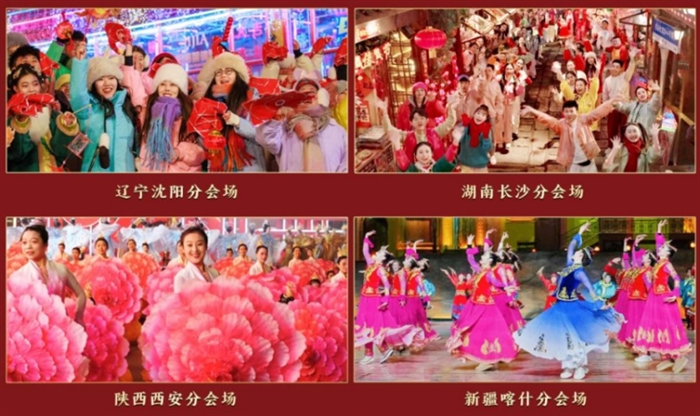 其中,在中国工业博物馆的沈阳分会场,东北曲艺与当代风尚的创意碰撞,让受众在冰天雪地感受火一般的热情;长沙分会场选址于湘江与浏阳河交汇处的“三馆一厅”,用青春之歌赞颂“不夜星城”朝气蓬勃、敢为人先的昂扬风貌;陕西分会场的国潮表演将陕派说唱、创意水袖、鼓乐交响等多种艺术形式相融合,大唐不夜城再现诗意满长安的恢宏景象;位于喀什古城内的喀什分会场,各族群众欢歌笑语,带来器乐展示、情景演绎等表演,共同奏响中华民族一家亲的绚丽乐章。