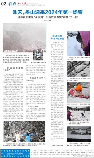 昨天,舟山迎来2024年第一场雪