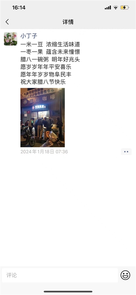 丁霞的朋友圈,腊八当天新街店向老人免费提供腊八粥