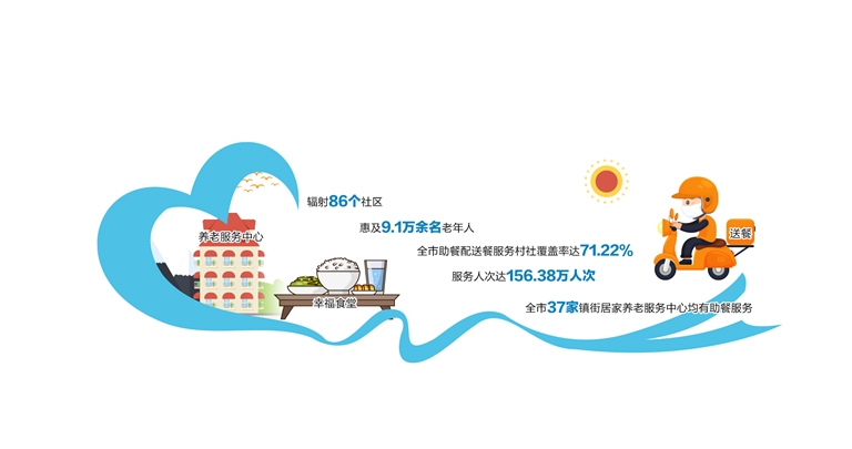 截至目前,全市已建成运营14家“幸福食堂”,辐射86个社区,惠及9.1万余名老年人。截至2023年底,全市助餐配送餐服务村社覆盖率达71.22%,服务人次达156.38万人次。其中,全市37家镇街居家养老服务中心均有助餐服务,“幸福食堂”实现县(区)布局全覆盖。