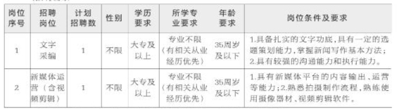 舟山传媒文化有限公司因事业发展需要,面向社会公开招聘2名工作人员(劳务派遣性质),具体要求如下: