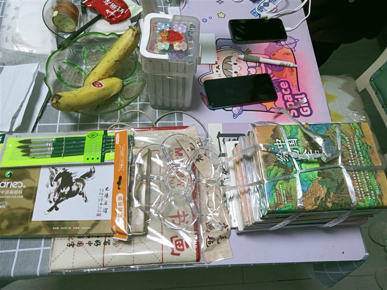 看到关于小春的报道后,市女企业家协会当即购买了一套画笔以及颜料、调色盘等,为避免绘画时颜料染到桌面,又细心地配了画毡,还到新华书店为小春挑选了《国画技法综合教程》《中国绘画全史》《格林童话》《安徒生童话》等图书。24日下午4时许,该协会副会长戴琪达、秘书长阴海燕提着小春的新年微心愿礼物,以及两袋米、两桶油等新年慰问品,来到小春位于定海西关新村的家。
