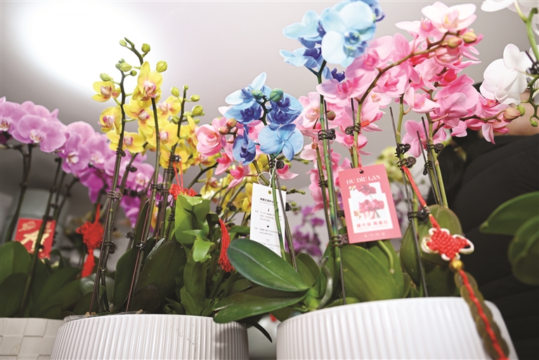 那么,舟山人偏好哪一类呢?张月月说,根据历年来的情况,蝴蝶兰、北美冬青、大花蕙兰、金桔等寓意好,卖得都不错,其中又以蝴蝶兰最受舟山人喜欢,几乎稳坐每年的年宵花销冠位置。