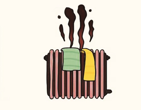 冬季温度过低,电暖器就成了最佳的晾晒烘干工具。但是,在电暖器上直接覆盖物品,容易使电暖器的热量不能及时散发而造成局部过热,或因距离太近,导致高温引燃覆盖物品。