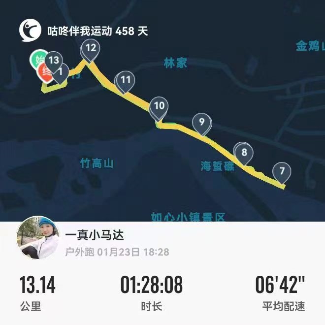 一真的咕咚APP记录了她的运动轨迹