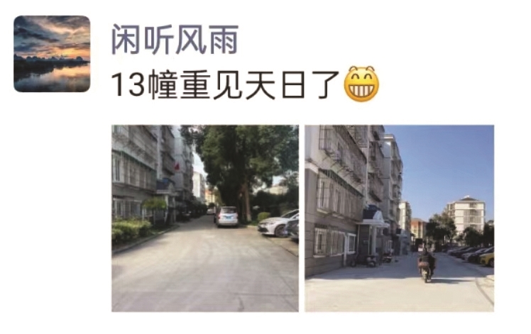 赖阿伯家住定海东山公寓,在他的朋友圈相册中,记者看到了小区过去的样子,车位稀缺,树木丛生遮挡采光……而现在的东山公寓已经变了模样,“朋友圈图上是13幢前面的那条路,变化最大了,原本道路又窄又暗,现在亮亮堂堂。”赖阿伯说。