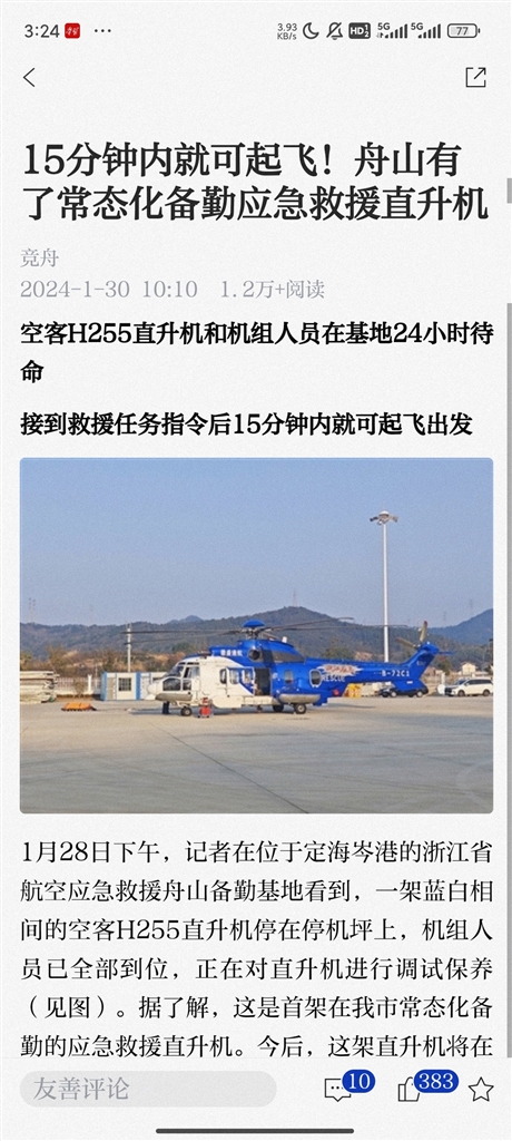 在舟山,空中急救早已不是稀罕事。小岛居民突发急病、海上船员突遭险情,屡有直升机争分夺秒开辟空中生命通道。直升机为了抢救生命一次次升空,充分体现了人民至上、生命至上的理念,也让美丽小岛变得更为可爱。