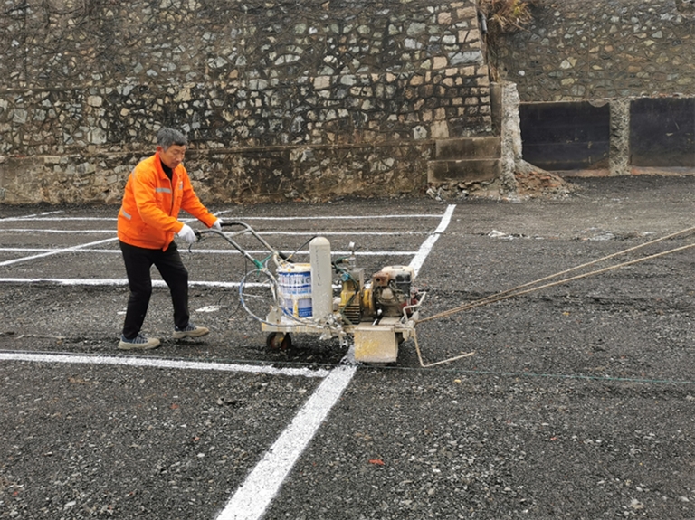 2月1日上午,走进东港(半升洞)客运码头一侧的半升洞油库区块,记者发现工作人员正抓紧时间停车位划线。