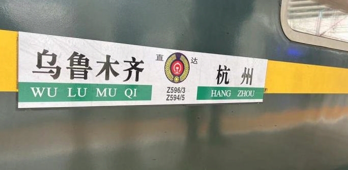Z594/5次列车是一对往返于杭州与乌鲁木齐之间的直达特快列车,前身为K594/5次列车,最早是从南京到乌鲁木齐,后来始发站延伸到了杭州。2017年12月至2019年7月,这趟列车的终点站还曾延伸到新疆阿克苏,是当时全国运行距离第二长、运行时间最长的列车。