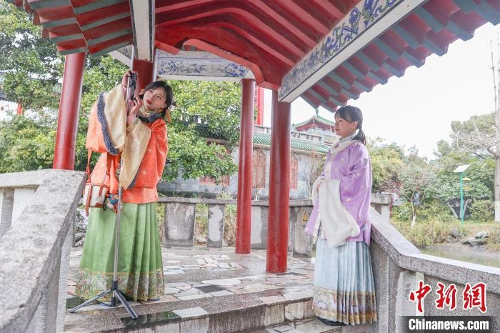 走进江南名楼滕王阁,不少穿着盘扣、斜门襟、立领等中式元素的年轻人正游览或拍摄写真。身着黑色盘扣外套、彩色缎面裙的“00后”大学生程敏告诉记者,为了迎新年,她特意买了“新中式”服装拍写真,“以前圣诞节我才会拍写真,现在发现穿中式服装过年是独属于中国人的浪漫,可以作为我的春节拜年照。”