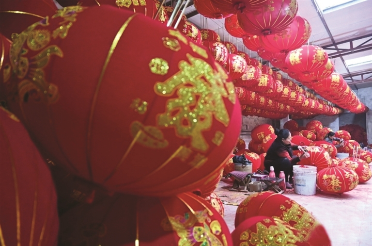 在中国,每10盏宫灯中,就有8盏产自“中国宫灯第一村”——河北省石家庄市藁城区梅花镇屯头村,每天有数十万件宫灯从这里转运到中国各地。每到腊月,是屯头村最忙的时候,家家户户忙着赶制灯笼,红色的光晕映照在窗户上,也照出浓浓年味。图为屯头村工人正在赶制灯笼。 中新网 图