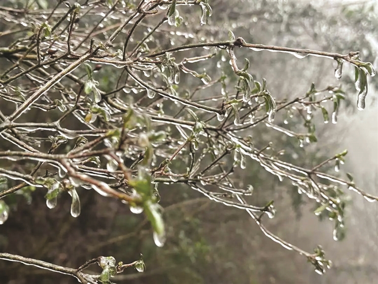 湖南、湖北、江西、贵州等地都不同程度地出现了冻雨。它滴水成冰,给户外万物加了一层“钢化膜”。是不是觉得很新奇?舟山也有!