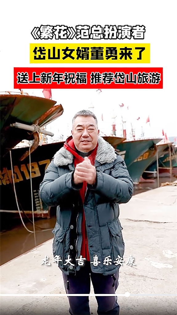 你知道吗?饰演范总的演员董勇可是阿拉舟山岱山女婿哟!近日,“范总”闪现岱山,回舟过年啦!他在岱山向全国朋友推荐岱山旅游,邀请大家来岱山看渔船、吃海鲜、登磨心山……