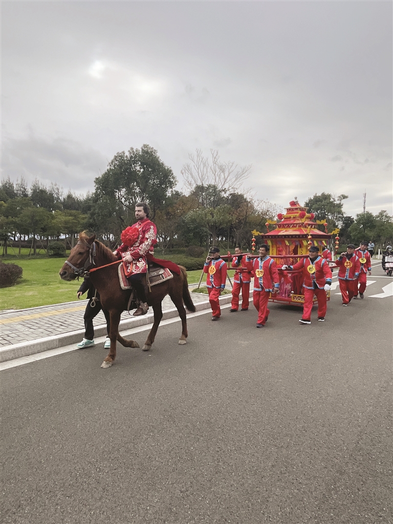 除此之外,章涛还将舞龙舞狮和其他传统民俗活动结合在一起,比如让舞龙舞狮融入现在流行的中式婚礼。“去年12月下旬,有一对来自俄罗斯的夫妻在东港举办中式婚礼,就请了我们的龙狮队。新娘乘着花轿,新郎骑着高头大马,后面伴着舞龙舞狮,非常养眼。我觉得这样非常好,这种形式不仅让‘金山龙’走出去了,还把中国的文化带给了世界。”