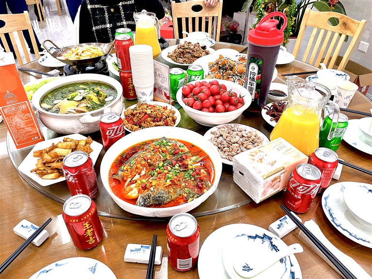 从吴香香拍的照片中可以看出,消防救援站的年夜饭非常丰富,除了海鲜,还有川菜、卤菜等,色香味俱全。当晚,他们还看了表演、玩了游戏,几乎每个人都拿到了新年“大礼”。吴香香和任柯聿拿到的奖品是电动牙刷和毛球修剪器,她告诉记者:“看着柯聿和队友一起嬉笑打闹,大家都很开心,我也是第一次这么近距离走进他的工作,我为他们感到骄傲。”