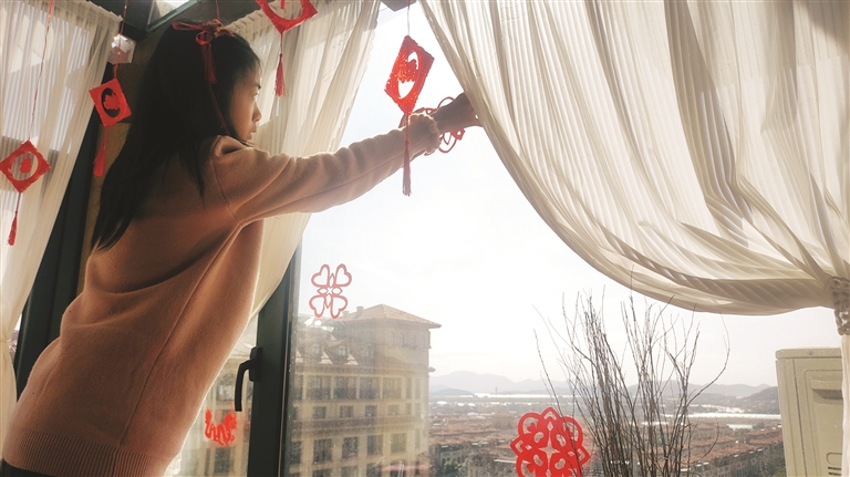 “我小时候觉得过年有意思,但是现在年味越来越淡,所以想在家里布置,增加点年味。”董妈妈说,贴上自己写的春联和剪好的窗花,在阳台上挂好福灯,家里变得红红火火,年味也一点点浓郁了起来。