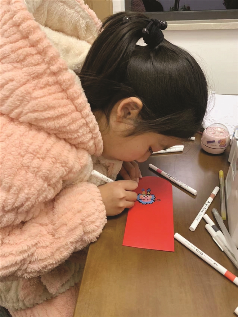 王胥欢本就喜欢画画,临近过年,正好家里要准备红包,她就自告奋勇,和哥哥一起接下了手绘红包的任务。