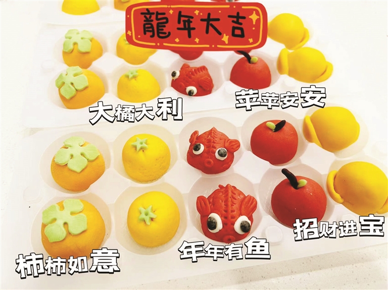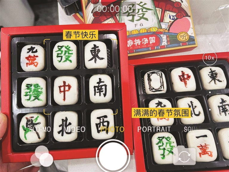 “柿柿如意”的柿子造型最受欢迎,还有烘焙达人手作麻将汤圆