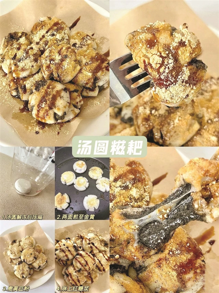 小红书网友“行走的美味”则分享了多款汤圆创意吃法,如将汤圆与牛奶鸡蛋醪糟同煮,普普通通的汤圆就多了一分甜润与酒香;将汤圆解冻后压扁,放入锅中两面煎至金黄,撒上黄豆粉并淋上红糖浆,汤圆的口感瞬间变得丰富起来。如果吃腻了传统的水煮汤圆,市民朋友们也不妨尝试一下这些创意吃法,让传统佳节因创意美食变得新意十足。