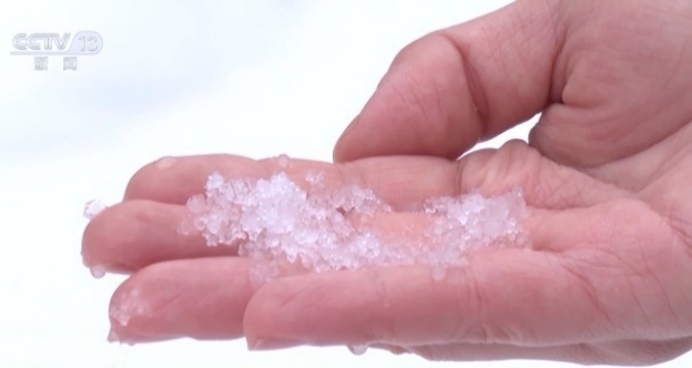 钟敏说:“霰的话,跟冰粒相比它的不稳定层结要稍微强一些,所以它在高空融化的过程中还会有冰晶和过冷却水的反复增长,它的形态上面是白色为主,冰粒它其实是在高空经过暖层的时候已经完全融化成液态水滴了,再经过底下深厚的冷层它又会再次冻结,所以就像水结成冰是透明的。”