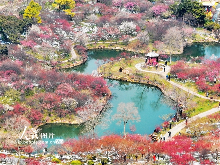 2月25日,江苏扬州瘦西湖风景区内梅花竞相绽放,姹紫嫣红,一派春意盎然的景象,吸引游客前来赏花游玩。 据人民网