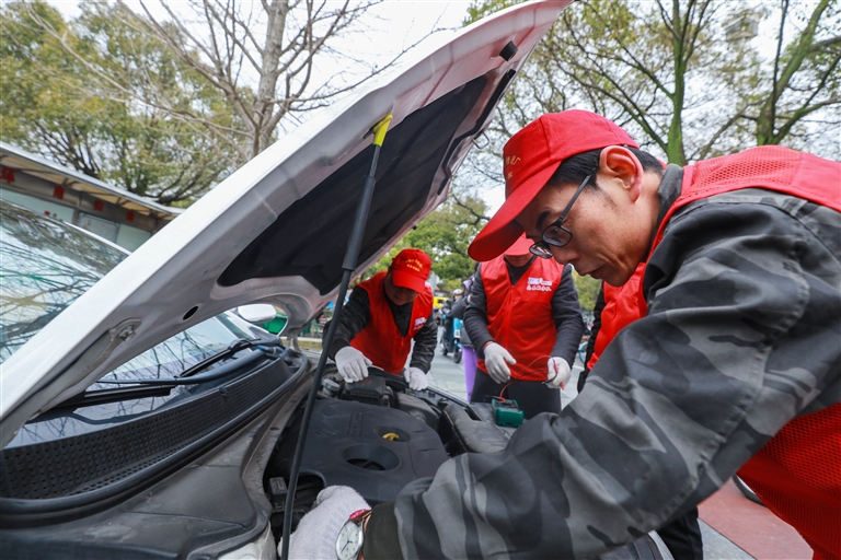 昨天上午,定海卫海社区联合港北社区在港务广场开展以“做一颗永不生锈的螺丝钉”为主题的学雷锋志愿服务活动,党员志愿者和驻舟某部官兵开设公益理发、汽车检测和残疾人之家义卖等十余个志愿服务项目,附近居民纷纷点赞 记者 张磊 通讯员 倪燕娜 毕竹青 摄