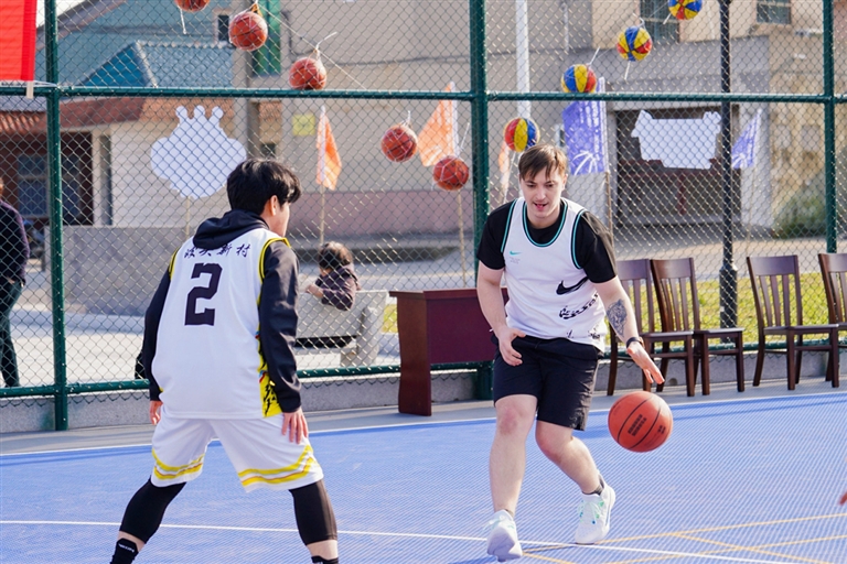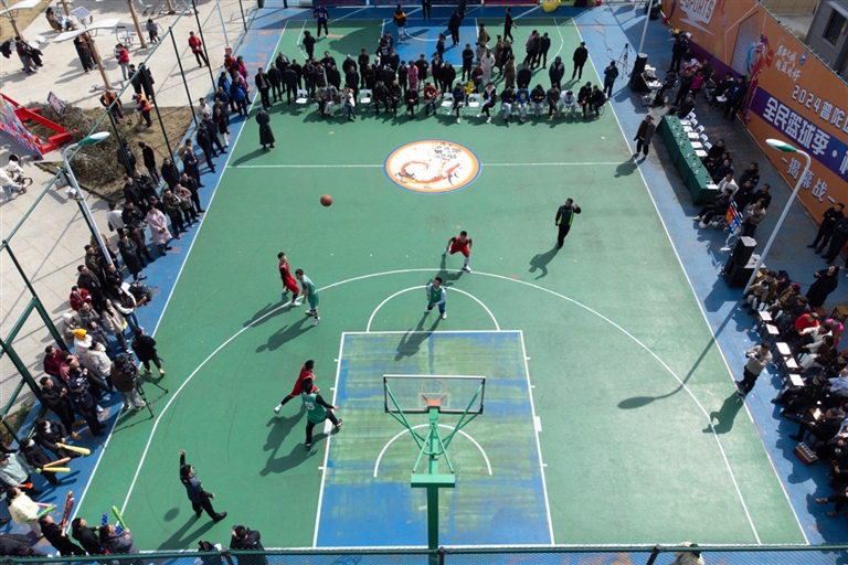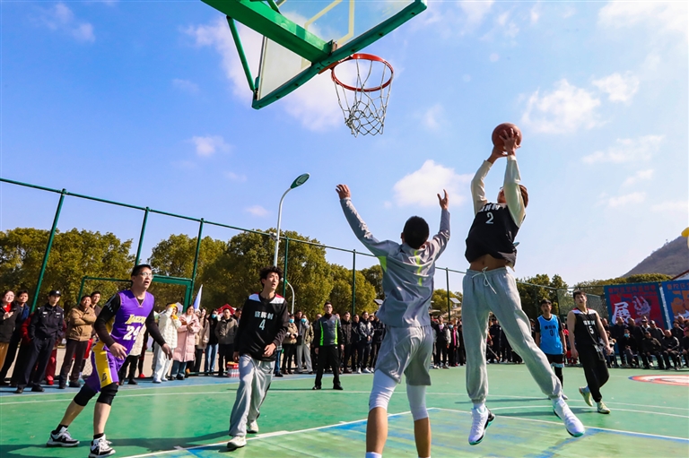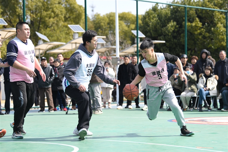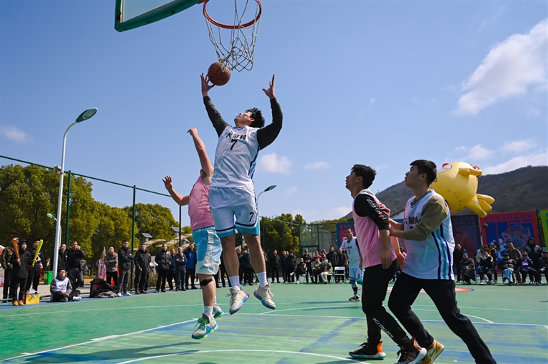 3月7日,普陀区“全民篮球季”·村BA揭幕战在展茅螺门渔家广场开启 图/姚凯乐