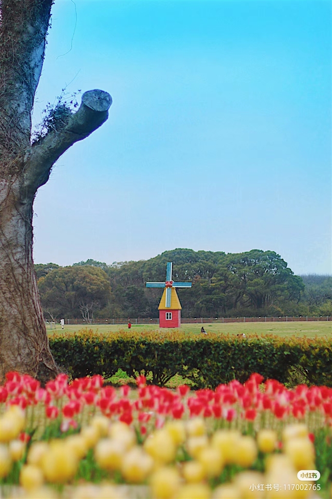 首先是不出市区就能欣赏到的小型郁金香花海。在新城东西快速路和千岛路的交叉口,离新碶头(北)公交站不远处,就有一片主要以红色和红黄复色郁金香组成的花田,由于小花田在马路之间,更推荐搭乘公交而后步行前往。适合上班族们午间闲暇前来走走,放松心情。