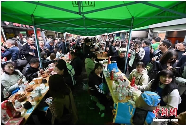 3月14日,甘肃天水,游客品尝麻辣烫。近日,甘肃天水麻辣烫在网络平台火爆,吸引全国各地的很多游客前来品尝。据了解,为方便游客品尝美食,当地不仅提供乘坐公交专线,还准备农特产、精品文旅线路及精致文创等,让游客在品味美食的同时,也能深入体验当地文化魅力。