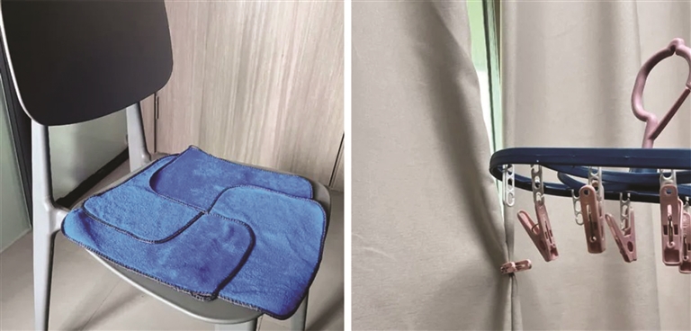 林七用抹布拼起来的椅垫 林七用晾衣夹夹窗帘