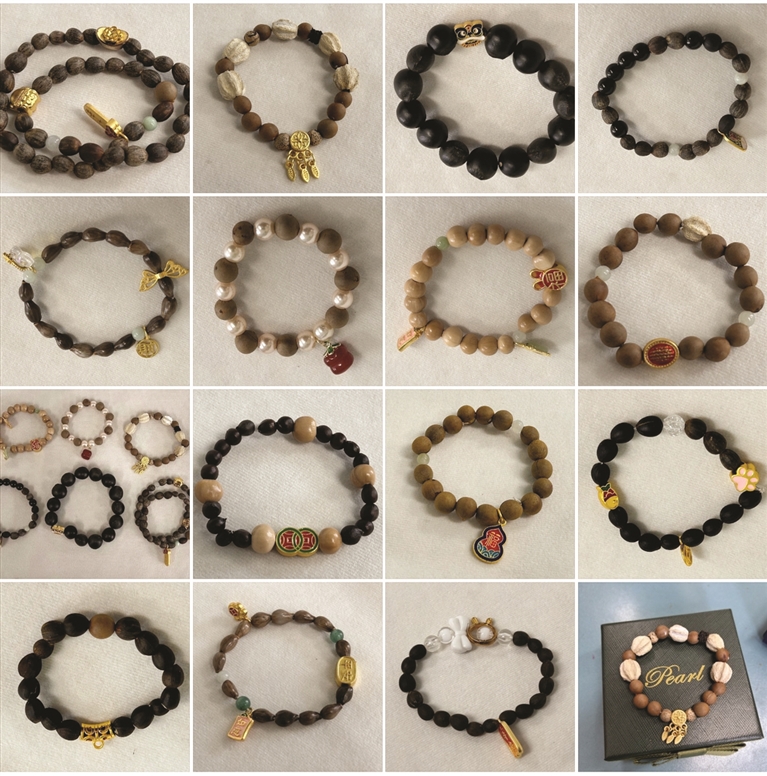 秋天的校园里随处可见果实。师生们将果实收集起来,做成了手串。校园里樟树的果子、椭圆形的加拿利海枣果实、自带温润油光的草珠子……大家在校园内外寻到了不少宝,再配上一些小装饰,做出来的手串堪比文创产品。