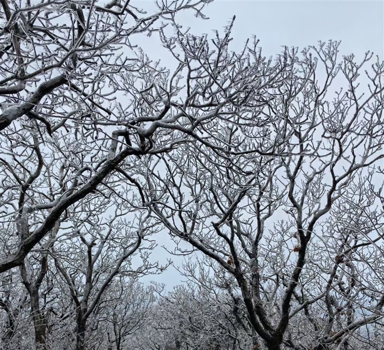 春日的一个清晨,当第一缕阳光穿透薄雾,照耀在蚂蝗山上时,人们惊讶地发现,这里的树木、草丛,甚至是每一片叶子,都被一层薄薄的冰霜所覆盖。这不是北方常见的雪景,而是南方罕见的冻雪,它以一种静谧而优雅的姿态,出现在了这个海岛的春天。