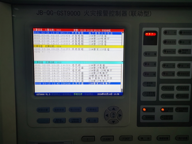 ●御景国际小区 火灾隐患: 消控室消防主机存在大量故障点