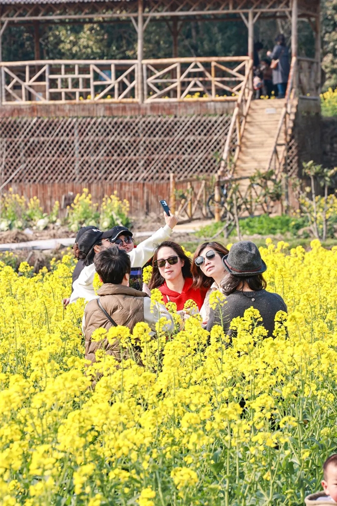 定海南洞艺谷油菜花花开正艳,游客沐浴在阳光下,赏花听歌,留下靓影 记者 张磊 摄