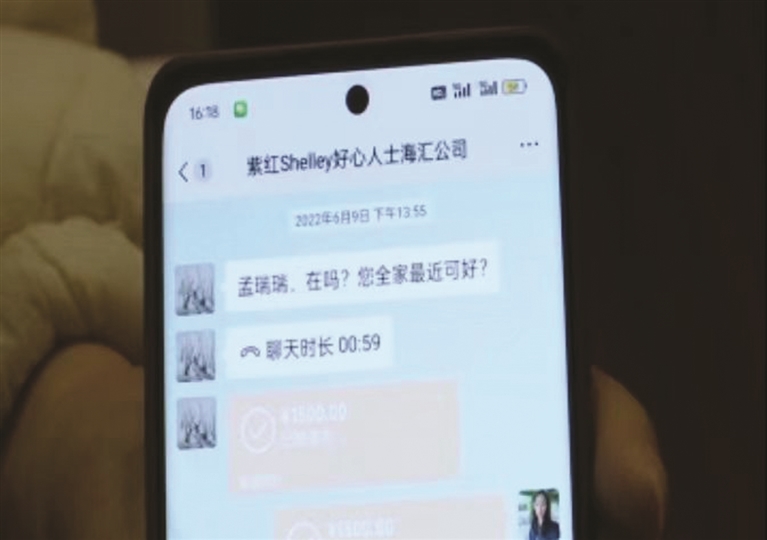 2020年5月,也就是孟瑞丈夫去世后第二个月,她的微信收到了一个好友添加申请。一位名叫“紫红Shelley海汇公司”的陌生人称要对她家进行资助。